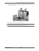 8. Hold the drive cage in the upright position while removing the two screws that secure the