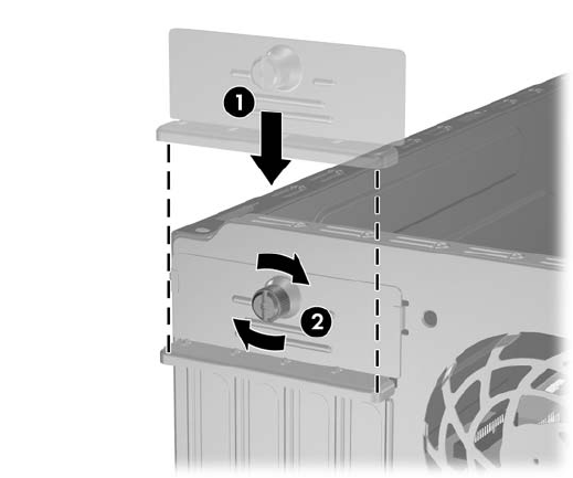 coperchietto dello slot verso le staffe e i coperchietti (1) della scheda di espansione, in modo da