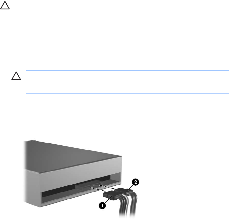 a. Se si rimuove un'unità ottica da 5,25", scollegare il cavo di alimentazione (1) e il cavo dati (2)