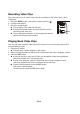 Enregistrer un clip-vidéo Ce mode permet l’enregistrement de clip-vidéos avec une résolution de 320 x 240 / 640 x 480 / 720p pixels. 1. Appuyer sur le bouton MODE et régler l’appareil sur le mode [ ]. 2. Composer le sujet. 3. Appuyer sur le bouton du déclencheur. L’enregistrement du clip-vidéo démarre. Appuyer à nouveau sur le bouton du déclencheur pour arrêter l’enregistrement du clip-vidéo. Le temps d’enregistrement dépend de la capacité de la mémoire et du sujet de la vidéo à enregistrer.