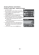 Apagando fotos e vídeos Excluir uma imagem / Excluir todas as imagens 1. 2. 3. 4. 5. 6. 7. Pressione o botão . A última foto ou vídeo aparecerá na tela. Selecione a foto ou vídeo que você quer excluir utilizando o lado direito do botão de navegação. Pressione o botão MENU. Selecione [excluir] com o lado superior ou inferior do botão de navegação, e pressione o botão CONFIGURAR. Selecione [uma] ou [todas] com o lado esquerdo ou direito do botão de navegação, e pressione o botão CONFIGURAR.