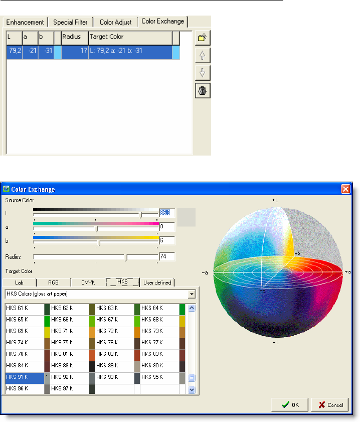 can define an unlimited number of color exchange filters.