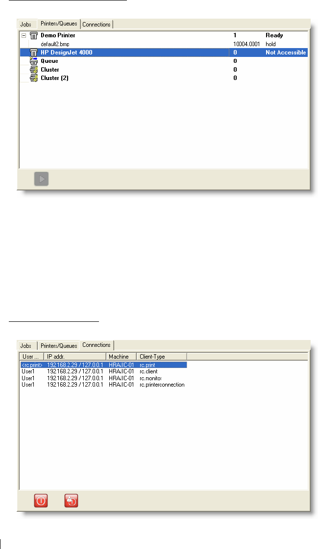 This tab monitors all connections to the reprocontrol.server, including reprocontrol.clients, reprocontrol.prints, and