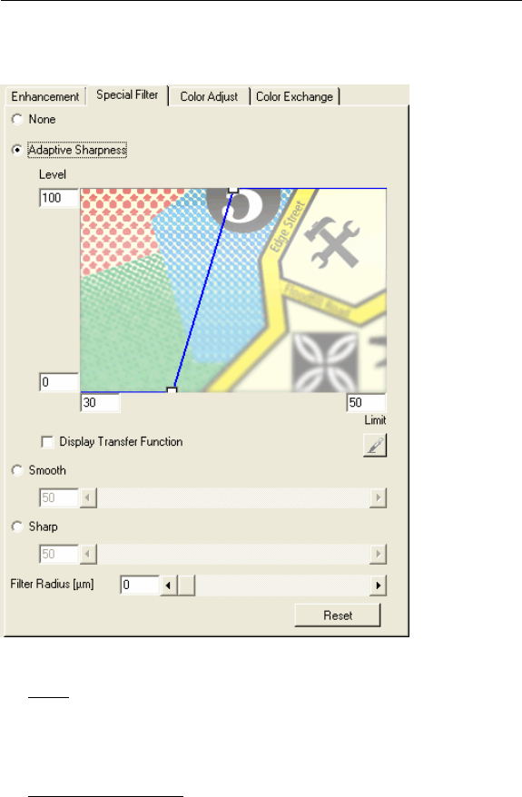et the level, or intensity, of the sharpening and softening filters individually. Picture sections with