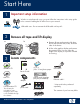 Start Here 1 Important setup information Wireless or wired network users: you must follow the instructions in this setup guide to be successful adding the HP All-in-One to your network. USB cable users: Do not connect the USB cable until step A2. 2 Remove all tape and lift display a 3 b a Remove all tape and protective film from the lid and from the front, back, and both sides of the device. b Lift the color graphics display and remove the protective film.