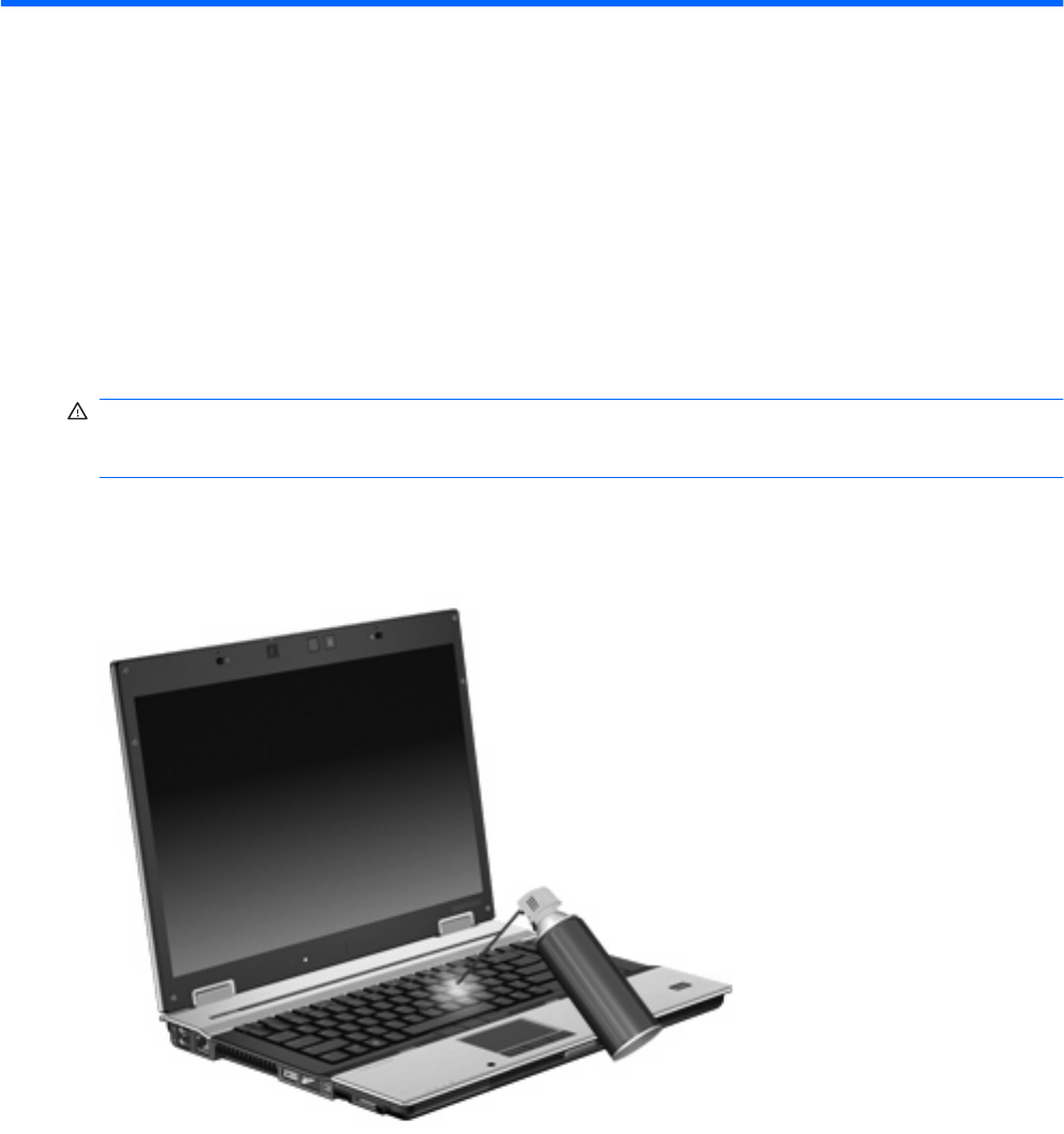 kruimels te verwijderen die onder de toetsen terechtkomen. U kunt een spuitbus met perslucht en een