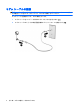 モデム ケーブルの接続 警告! 火傷や感電、火災、装置の損傷を防ぐため、モデム ケーブル(一部のモデルにのみ付属)ま たは電話ケーブルを RJ-45(ネットワーク)コネクタに接続しないでください。 モデム ケーブルを接続するには、以下の操作を行います。 2 1. モデム ケーブルをコンピュータ本体のモデム コネクタに差し込みます(1) 。 2.