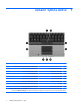 1 שימוש בהתקני ההצבעה תיאור רכיב )(1 מוט הצבעה להזזת המצביע ולבחירה או הפעלה של פריטים על המסך. )(2 לחצן אמצעי של מוט ההצבעה פועל כמו הלחצן האמצעי בעכבר חיצוני. )(3 לחצן ימני של מוט ההצבעה פועל כמו הלחצן הימני בעכבר חיצוני. )(4 אזור הגלילה של לוח המגע לגלילה למעלה או למטה. )(5 לחצן ימני של לוח המגע פועל כמו הלחצן הימני בעכבר חיצוני. )(6 לחצן אמצעי של לוח המגע פועל כמו הלחצן האמצעי בעכבר חיצוני.