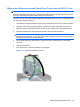 3. Lepaskan strip perekat yang mengamankan sensor termal pada bagian atas hard drive (1), lalu