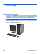 Mengubah Konfigurasi dari Minitower ke Desktop 1. Lepaskan/buka semua perangkat pengaman yang menghalangi Anda untuk membuka komputer. 2. Lepaskan semua media yang dapat dilepas, seperti disket atau compact disc, dari komputer. 3. Matikan komputer dengan benar dari sistem operasi, lalu matikan semua perangkat eksternal. 4. Lepaskan kabel daya dari stopkontak listrik dan lepaskan semua perangkat eksternal.