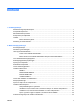 Innhold 1 Produktegenskaper Standard konfigurasjonsfunksjoner ...................................................................................................... 1 Frontpanelkomponenter ....................................................................................................................... 2 Minnekortleserkomponenter ................................................................................................................. 3 Komponenter på bakpanelet ................................