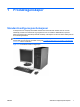 1 Produktegenskaper Standard konfigurasjonsfunksjoner Funksjonene til HP Compaq Konvertibelt minitårn kan variere alt etter modell. Hvis du vil ha en fullstendig oversikt over maskinvare og programvare som er installert i datamaskinen, kjører du diagnoseverktøyet (kun inkludert på enkelte modeller). Instruksjoner for bruk av dette verktøyet finner du i Feilsøkingshåndbok. MERK: HP Compaq Konvertibelt minitårn-datamaskinen kan på en enkel måte konverteres til en bordmodell.