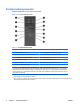Tastatur Figur 1-5 Komponenter på tastaturet Tabell 1-4 Komponenter på tastaturet 1 NOWW 1 Funksjonstaster Utfører spesielle funksjoner, avhengig av hvilken programvare som brukes. 2 Redigeringstaster Omfatter disse: Insert, Home, Page Up, Delete, End og Page Down. 3 Statuslamper Oversikt over statusen til datamaskinen og tastaturinnstillingene (NumLock, Caps Lock og Scroll Lock). 4 Tastene på talltastaturet Fungerer som tastene på en kalkulator.