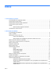 Índice 1 Funcionalidades do produto Funcionalidades da configuração padrão ............................................................................................ 1 Componentes do painel frontal ............................................................................................................ 2 Componentes do leitor de cartões multimédia ..................................................................................... 3 Componentes do painel posterior ....................................