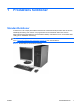 1 Produktens funktioner Standardfunktioner Funktionerna i HP Compaq konvertibelt minitower kan variera beroende på modell. Om du vill få en fullständig förteckning över maskin- och programvara som är installerad i datorn kan du köra diagnostikverktyget (inkluderat bara på vissa datormodeller). Instruktioner för hur du använder detta verktyg finns i handboken Felsökning. OBS! HP Compaq konvertibelt minitower kan enkelt konverteras till en bordsdator.