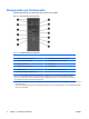 Komponenter på frontpanelen Enhetskonfigurationen kan skilja sig åt något mellan olika modeller. Bild 1-2 Komponenter på frontpanelen Tabell 1-1 Komponenter på frontpanelen 1 optiska enheter, 5,25 tum 8 5,25-tumsfack för extra enheter2 2 Aktivitetslampor på optisk enhet 9 Aktivitetslampa för diskettenhet (tillval) 3 3,5.
