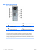 Keyboard Figure 1-5 Keyboard Components Table 1-4 Keyboard Components 1 ENWW 1 Function Keys Perform special functions depending on the software application being used. 2 Editing Keys Includes the following: Insert, Home, Page Up, Delete, End, and Page Down. 3 Status Lights Indicate the status of the computer and keyboard settings (Num Lock, Caps Lock, and Scroll Lock). 4 Numeric Keys Work like a calculator keypad. 5 Arrow Keys Used to navigate through a document or Web site.