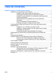 Tabla de contenido Instalación rápida y procedimientos iniciales .............................................................. 1 Instalación y personalización del software ..................................................... 1 Instalación del sistema operativo Windows .................................. 1 Descarga de actualizaciones de Microsoft Windows ................... 2 Instalación o actualización de controladores de dispositivos (sistemas Windows) .....................................................