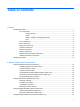 Table of contents 1 Features Identifying hardware ............................................................................................................................. 1 Top components .................................................................................................................. 1 Pointing devices .................................................................................................. 1 Lights ............................................................................