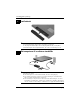 Grundlæggende opsætning 2 Isæt batteriet ADVARSEL! For at mindske potentielle sikkerhedsproblemer må du kun anvende Å den vekselstrømsadapter eller det batteri, der fulgte med computeren, en ombytningsvekselstrømsadapter eller et ombytningsbatteri fra HP, en kompatibel vekselstrømsadapter eller et kompatibelt batteri, der er købt som ekstraudstyr hos HP.