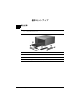 基本セ ッ ト ア ッ プ 2 バ ッ テ リ を装着する : 安全に関す る問題の発生を防 ぐ ため、 こ の製品を使用す る場合は、 製品に付属 し ていた Å 警告 ACアダ プ タ ーかバ ッ テ リ 、 HPが提供する交換用ACアダ プ タ ーかバ ッ テ リ 、 ま たはHPか ら オプ シ ョ ン製品 と し て購入 し た互換性のあ るACアダ プ タ ーかバ ッ テ リ だけ を お使い く だ さ い。 3 コ ン ピ ュ ー タ ーを外部電源に接続する ✎ 電源コードおよび電源コンセントの外観は、国や地域によって異なります。 Å 警告 : 感電や装置の損傷を防ぐ ため、 必ず以下の注意事項を守 っ て く だ さ い。 ■ 電源 コ ー ド は、製品の近 く の手が届きやすい場所にあ る電源 コ ン セ ン ト に差 し 込んで く だ さ い。 ■ コ ン ピ ュ ー タ ーへの外部電源の供給を完全に遮断す る には、 電源を切 っ た後、 電源 コ ー ド を コ ン ピ ュ ー タ ーか ら ではな く コ ン セ ン ト から 抜いて く だ さ い。 ■ 安
