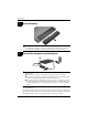 Basic Setup 2 Insert the battery To reduce potential safety issues, use only the AC adapter or battery Å WARNING: provided with the computer, a replacement AC adapter or battery provided by HP, or a compatible AC adapter or battery purchased as an accessory from HP. 3 Connect the computer to external power To reduce the risk of electric shock or damage to your equipment, observe Å WARNING: these practices: ■ Plug the power cord into an AC outlet that is easily accessible at all times.