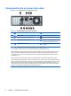 Componentele cititorului de carduri Cititorul de carduri este un dispozitiv opţional, disponibil numai pe unele modele. Consultaţi ilustraţia şi tabelul următor, pentru identificarea componentelor cititorului de carduri. Figura 1-3 Componentele cititorului de carduri Tabelul 1-2 Componentele cititorului de carduri Nr.