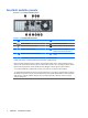 Součásti čtečky karet médií Čtečka karet médií je volitelné zařízení, které je k dispozici pouze u některých modelů. Součásti čtečky karet médií můžete určit pomocí následujícího obrázku a tabulky. Obrázek 1-3 Součásti čtečky karet médií Tabulka 1-2 Součásti čtečky karet médií Č.