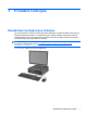 Windows logotipo klavišo naudojimas Windows logotipo klavišą naudojant kartu su kitais klavišais, galima atlikti tam tikras Windows operacinės sistemos funkcijas. Daugiau informacijos apie Windows logotipo klavišą ieškokite „Klaviatūra“ 6 puslapyje . 1-5 Lentelė Windows logotipo klavišo funkcijos Toliau išvardytos Windows logotipo klavišo funkcijos galimos Microsoft Windows XP ir Microsoft Windows Vista sistemose.