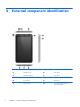2 2 External component identification Item Component Item Component (1) Headphone jack (6) Front camera (2) Internal microphone (7) Rear camera (3) Micro SD Card reader (8) Speaker and headphone volume (4) Power button (9) Speakers (2) (5) WLAN antenna (10) Micro USB port (for charging or connecting to tablet) Chapter 2 External component identification