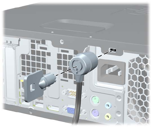 Figura 4-41 Instalarea unui dispozitiv de blocare cu cablu