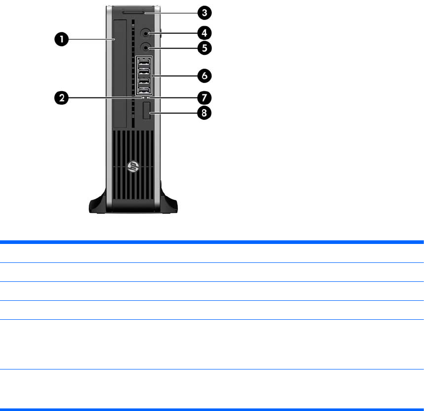 3 Cititor de carduri media SD (opţional) 7 Indicator luminos pentru activitatea unităţii de disc