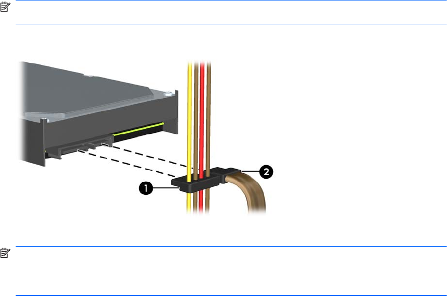 Figura 2-32 Conectarea cablului de alimentare şi a cablului de date la o unitate de disc SATA