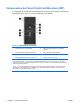 1 Conector do cabo de alimentação 6 Conector de saída para dispositivo de