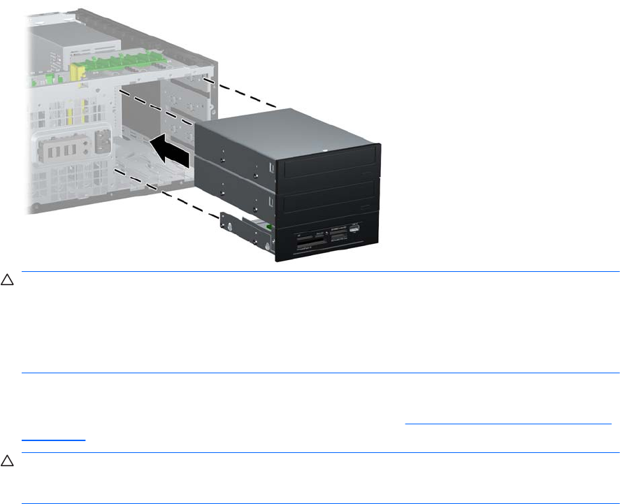 9. Осторожно установите дисковод в самый верхний свободный отсек, пока он не встанет на