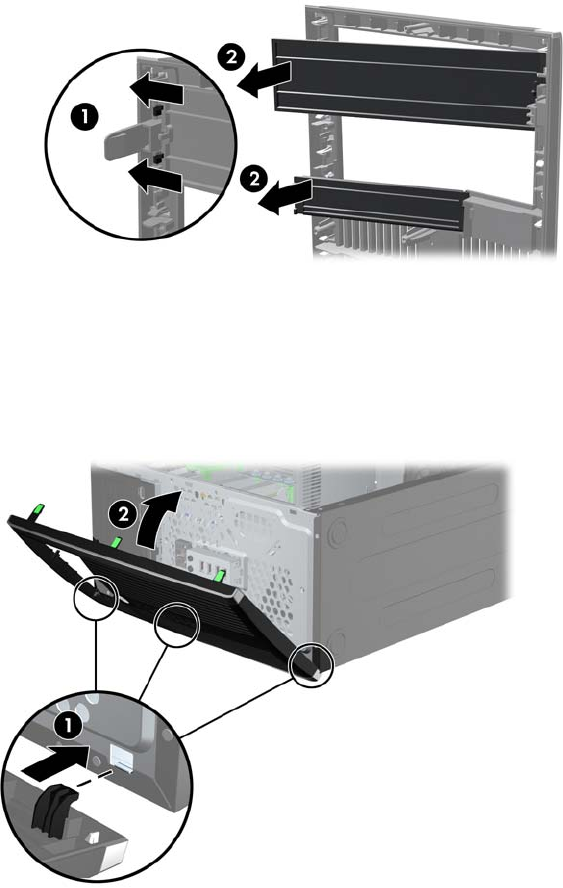 - Компоненты передней панели модели с изменяемым вертикальным корпусом Convertible Minitower (CMT)