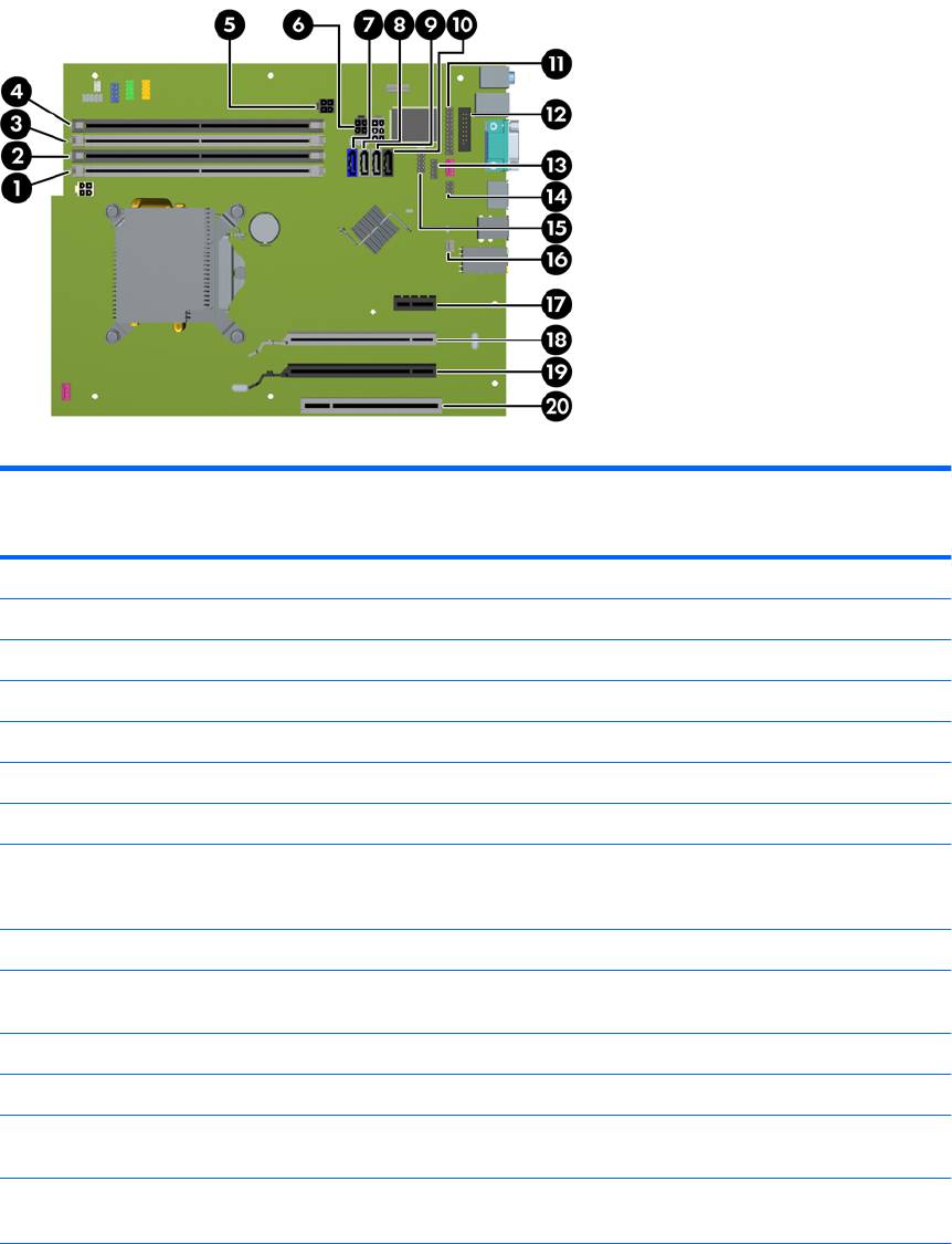Таблица 3-1 Разъемы системной платы компьютеров серии 8200 Elite