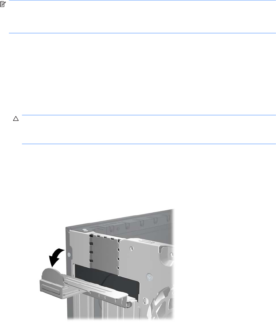 7. Освободите защелку, которая удерживает заглушку гнезда PCI, подняв зеленый язычок