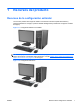 - 10. Reinstale el panel de acceso del equipo. 11. Reconecte el cable de alimentación y encienda el equipo. 12. Bloquee todos los dispositivos de seguridad que fueron desactivados cuando el panel de acceso fue extraído. Cambio de la configuración Minitorre a equipo de escritorio 1. Extraiga/desacople todos los dispositivos de seguridad que eviten la apertura del equipo. 2. Extraiga toda la multimedia extraíble, como discos compactos o unidades flash USB del equipo. 3.