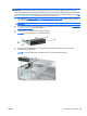 9. ถอดสายไฟ (1) และสายเคเบิลขอมูล (2) จากดานหลังของฮารดไดรฟ
