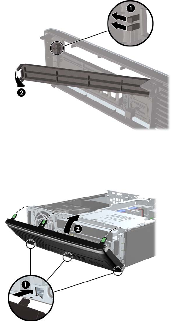 2. Pentru a îndepărta masca de ramă împingeţi cele două proeminenţe care menţin masca de