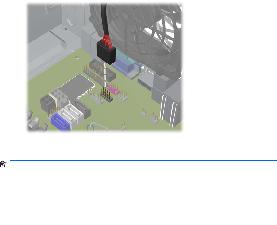 b. Dacă instalaţi un cititor de cartele, conectaţi cablul USB la conectorul USB plăcii de sistem