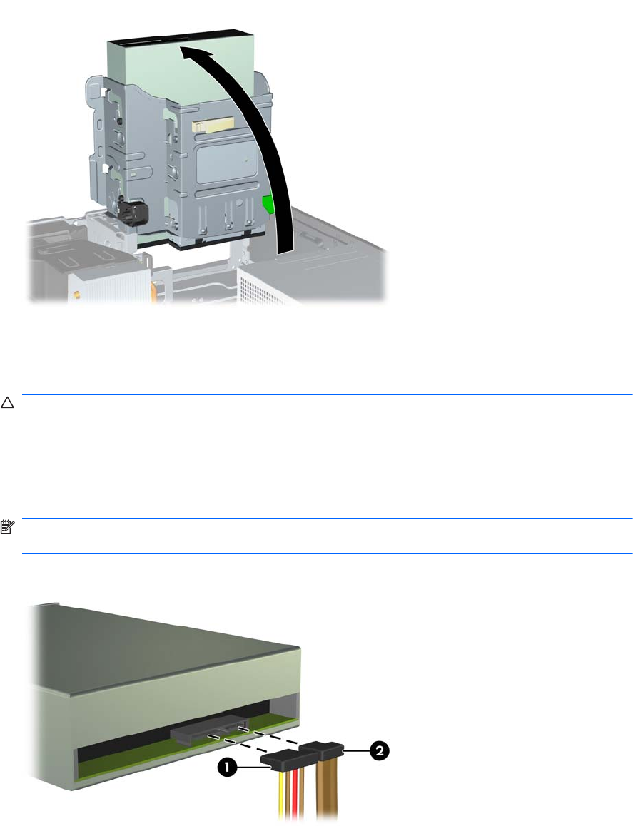 13. Įjunkite maitinimo (1) ir duomenų (2) kabelius į jungtis, esančias užpakalinėje optinio diskų
