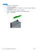 8. 如果要取出 SODIMM,请将 SODIMM 两侧的两个锁定器向外侧按 (1),然后将 SODIMM 从插