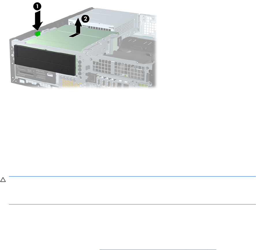 до упора, затем поднимите, чтобы полностью извлечь из блока дисководов (2).