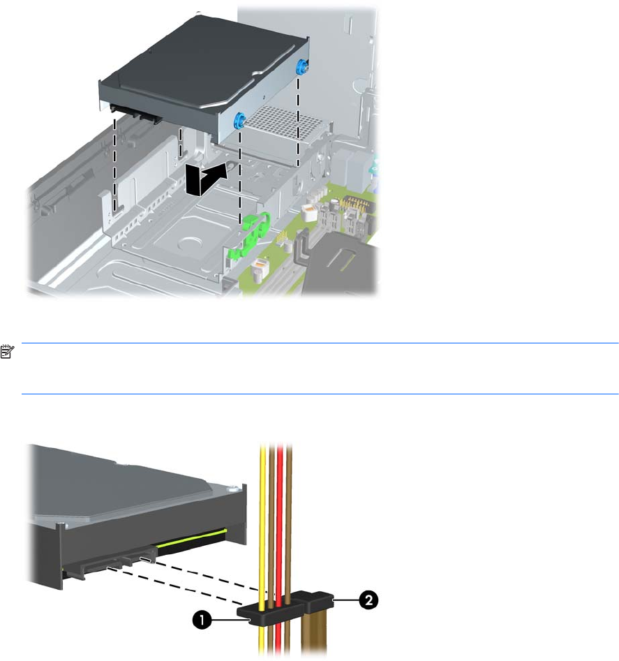 13. Подключите кабель питания (1) и кабель данных (2) к задней части жесткого диска.