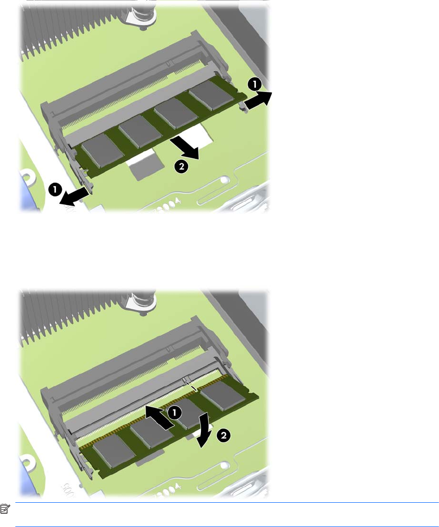 SODIMM (1), затем извлеките его из разъема (2).