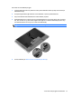 5. Trekk plastsperren/den runde klaffen (1) mot midten av datamaskinen for å frigjøre