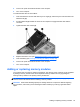 4. Rotate the SmartCard reader (1) until it lays flat on top the hard drive.