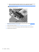 2. Ziehen Sie die Kunststofflasche (3) in Richtung Computermitte, um die Festplatte mit dem